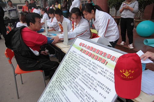 当日,我院健康科学系同学利用所学知识技能,为社区居民义务测量血压、按摩,并现场讲解有关健康知识,耐心回答居民有关问题,并发放《阳光体育科学健身》宣传手册等。此外,我院大学生社团还现场表演了安塞腰鼓、双截棍、有氧拉丁操等,受到社区居民的热烈欢迎。
