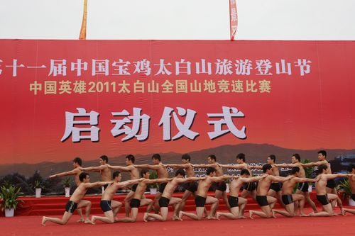 5月10日,由国家体育总局登山运动管理中心、陕西省旅游局、陕西省体育局和宝鸡市人民政府共同主办的第十一届中国宝鸡太白山旅游登山节暨2011太白争锋—中国英雄全国登山大赛启动仪式在太白山脚下隆重举行。久久不卡区《古典武艺》、《力与美的旋律》两个节目参加开幕式文艺演出,获得圆满成功,充分展示了陕西省优秀体育文化成果。