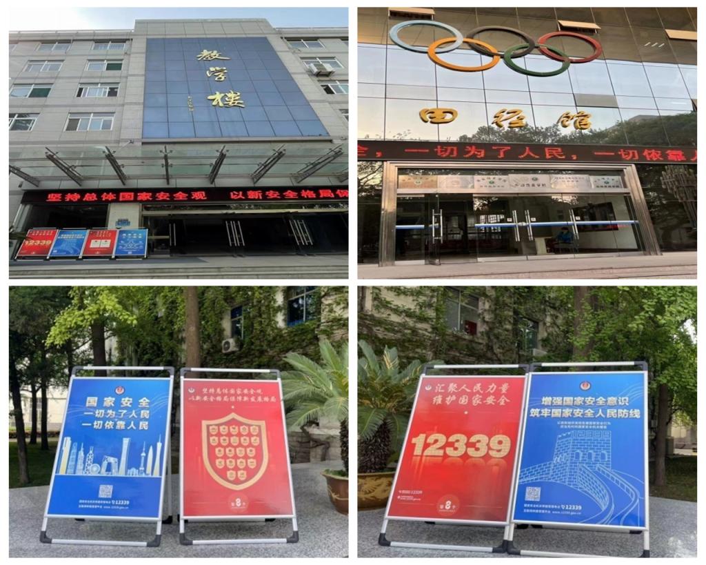 我校行政楼、教学楼、田径馆LED屏滚动播放“汇聚人民力量,维护国家安全”,“国家安全,一切为了人民,一切依靠人民”,“坚持总体国家安全观,以新安全格局保障新发展格局”等宣传标语;行政楼、教学楼、学生餐厅等重点区域摆放了普法宣传展架;校园网主页发布了“415全民国家安全教育日”主题海报;学校官方微信公众号发布了主题推送;各二级单位也在部门公众号推送了“法律在心中,普法宣传进行时”、“维护国家安全,人人有责”等各类国家安全宣传知识点和海报,将普法活动融入全校师生的日常生活中。