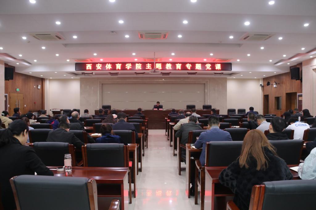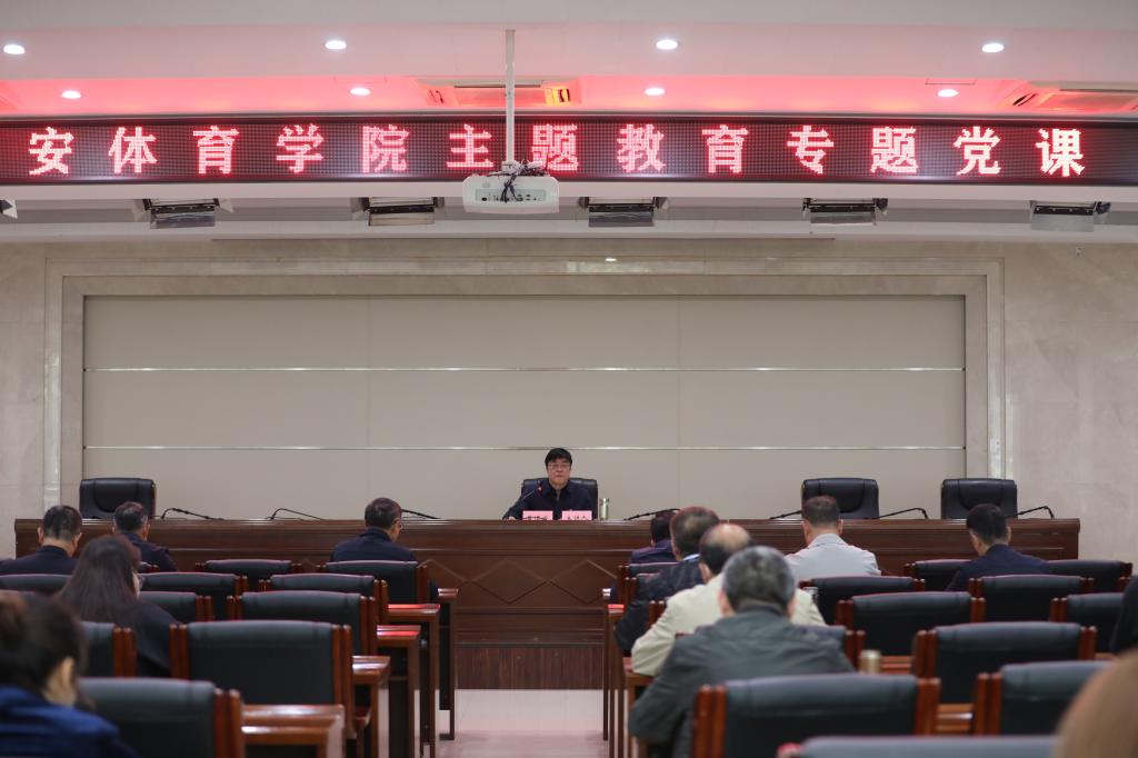 本网讯   5月11日,为深入推动主题教育走深走实、入脑入心,根据主题教育学习安排,党委书记黄道峻以《用党的政治建设统领高等教育高质量发展》为题,为全校副处级以上领导干部、二级学院师生代表及田径教研室党支部全体党员讲授党课。