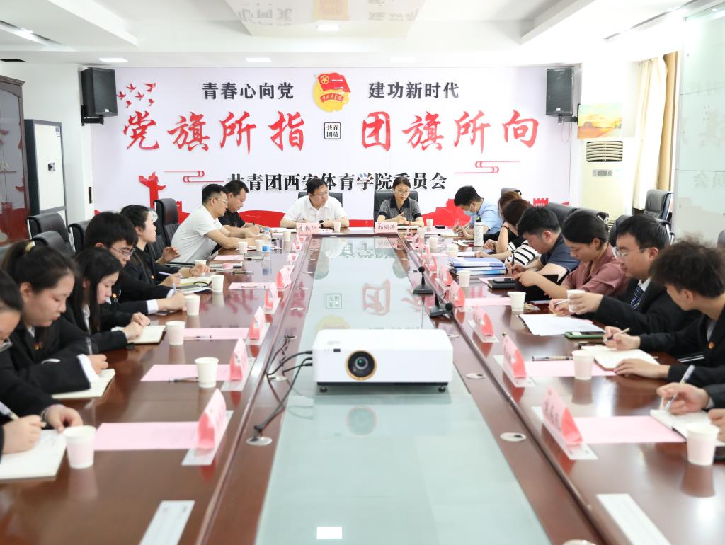 本网讯      为响应和落实全省“三个年”活动的安排部署,扎实推进主题教育走深走实,6月8日上午,共青团陕西省委学校部部长郝鹏涛、副部长朱振华一行来我校开展共青团工作调研,并召开团学骨干座谈会。校团委全体成员、各二级学院团委书记、校学生会主席团成员、大学生社团管理中心负责人、青年志愿者协会负责人等参加座谈会,会议由校团委书记熊辉主持。