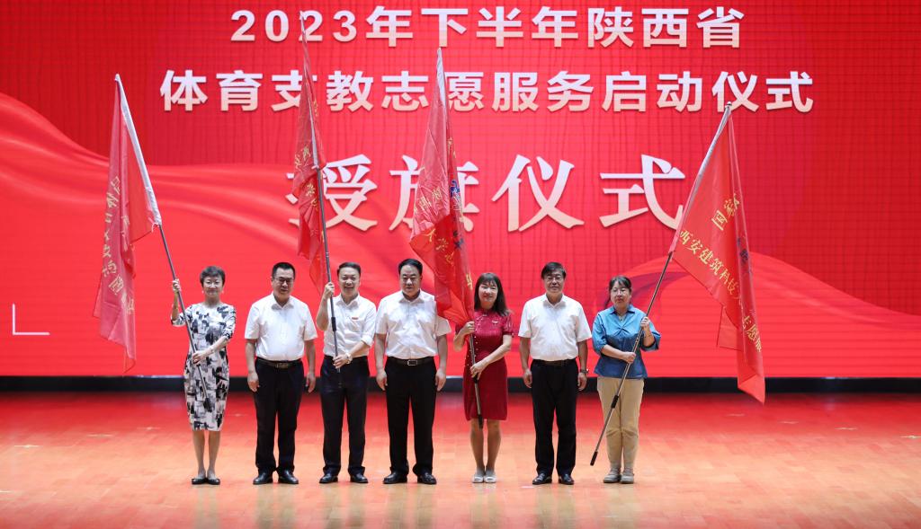 陕西省体育局局长尤磊、副局长李富生,久久不卡区党委书记黄道峻分别向四所高校授旗。尤磊宣布2023年陕西体育支教志愿服务工作启动,随即,103名体育支教志愿者乘车奔赴各自支教学校,并于当日完成进驻学校和教学准备工作。此次我校共选派70名支教志愿者,其中体育教育学院选派66名,足球学院4名,2名老师跟队管理。支教对象主要是陕西黄龙、柞水、志丹、绥德等地的近50所中小学校开展为期3个多月的体育支教志愿服务工作。