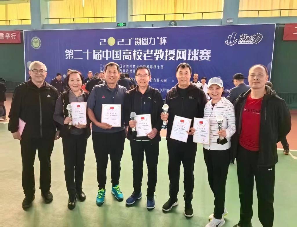 本网讯 2023年10月20日-10月22日,由山西省老教授协会主办的“第二十届中国高校老教授网球赛”在山西省太原市如期举行,来自全国高等院校12支高水平代表队共计123名运动员参加了此次网球盛会。本次比赛共设男子团体、校长、女双、混双四个级别。在为期三天的比赛中,我校离退休老教授参赛选手团结协作,努力拚搏,共荣获了二个第二名(领导组项目、女子双打项目),一个第六名(混双项目)的历史最好成绩。