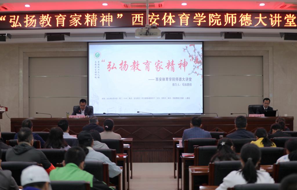 本网讯 4月30日,我校在含光校区二号行政楼六楼报告厅举办“弘扬教育家精神”师德大讲堂首场报告会。会议由校长李富生主持,党委副书记、纪委书记、监察专员杨芳乾、副校长谢英出席。