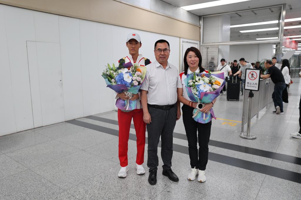 本网讯 8月9日下午,李富生赴机场迎接我校出征巴黎奥运会运动员李炎东及教练员蒋秋艳荣誉返校。党校办、竞校负责人陪同。