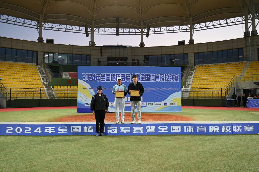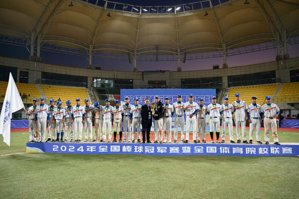 本网讯 10月27日,2024年全国棒球冠军赛暨全国体育院校联赛在我校鄠邑校区棒球场圆满闭幕。中国棒球协会技术委员会主委、赛事技术委员长高琦,中国棒球协会裁判员委员会执委、赛事裁判长刘军,校长李富生,副校长张葆欣,党委校长办公室主任张军,竞赛训练处处长许伟等出席闭幕仪式。
