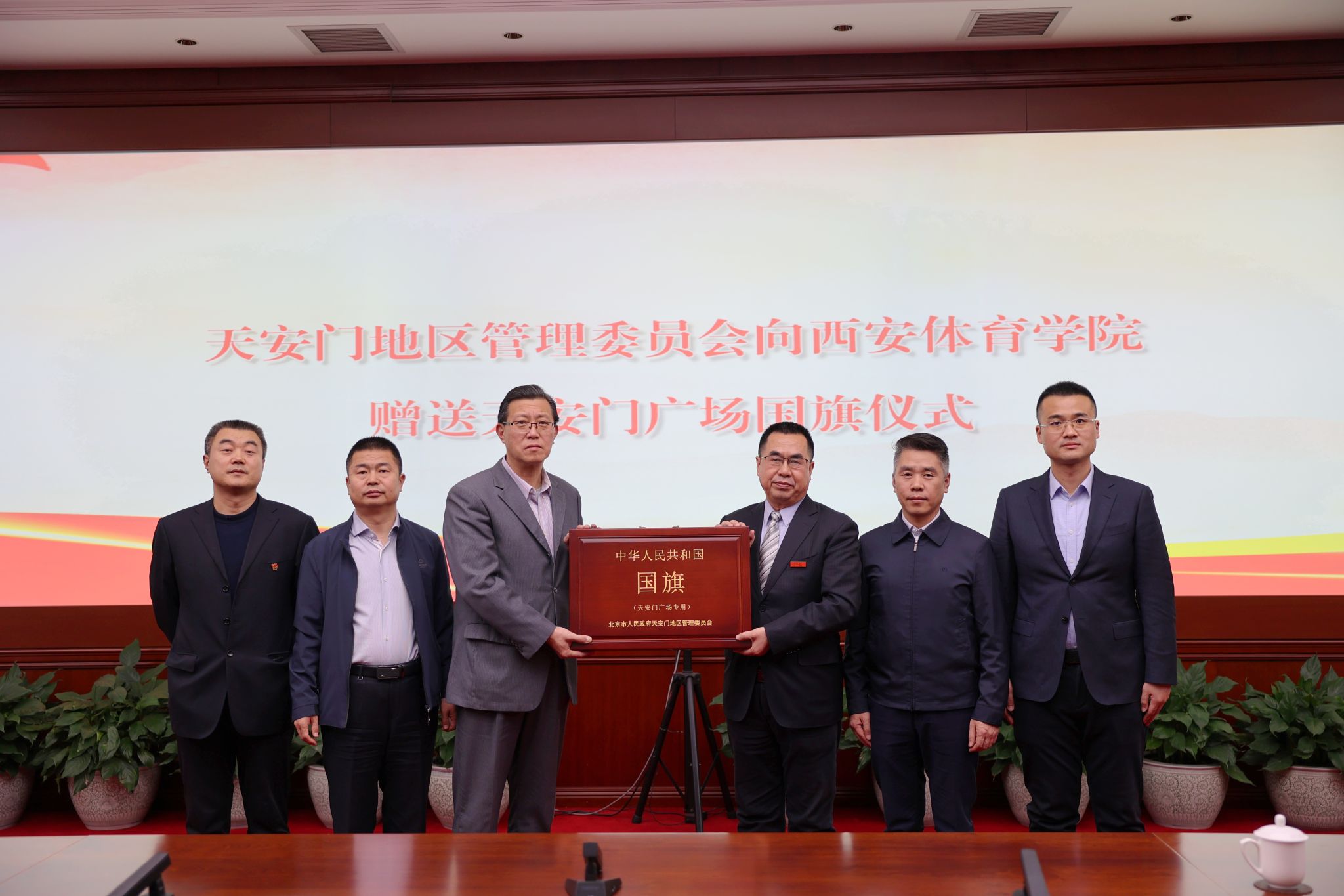 本网讯 12月13日下午,北京市天安门地区管理委员会向我校赠送国旗仪式在天安门地区管理委员会会议室举行。天安门地区管委会党组成员、副主任姚辉向学校赠送国旗,我校校长李富生代表学校迎请国旗,双方签订使用协议。我校获赠的是9月21日在天安门广场升起的国旗。在建校70周年之际获赠校庆日当天的国旗,对我校意义重大,将在学校校史馆永久珍藏。