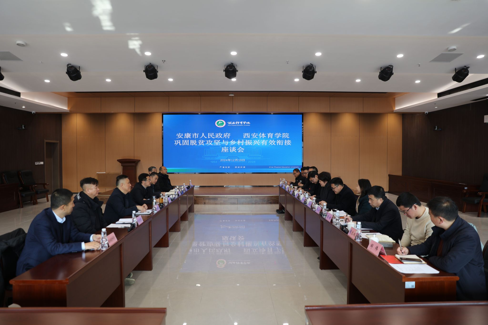 杨首艳感谢我校在安康脱贫攻坚任务最为艰巨的关键时期,派遣师生深入基层,助力乡村振兴,确保群众稳定脱贫。六年来,学校驻村帮扶工作取得显著成效,双方携手并进,不断深化合作,共同推动体育事业与产业的蓬勃发展,未来双方将继续携手并进,共谋发展新机遇、共谱发展新篇章、共担发展新使命。深度融合地方文旅产业,通过体育赛事、全民健身活动、体育人才培养等多点布局,实现安康体育事业的全面开花,展示安康地方魅力,双方进一步完善并细化战略合作框架协议,共同努力,让安康人民成为“健康中国”与“体育强国”战略的受益者,共享体育福祉。