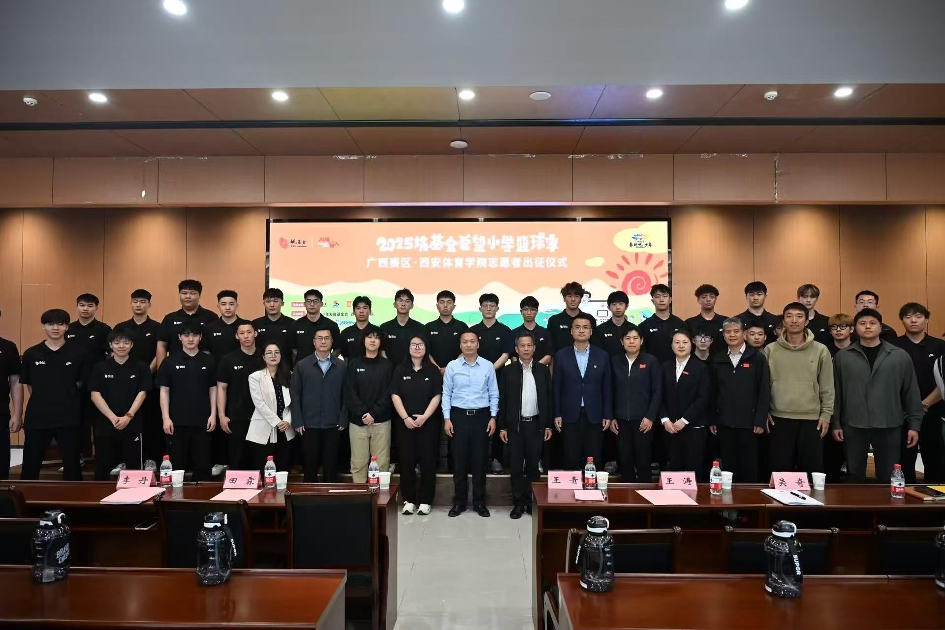本网讯    4 月 11 日,2025年姚基金希望小学篮球季广西赛区支教志愿者出征仪式在我校鄠邑校区举行。党委副书记马海涛、北京姚基金公益基金会项目主管欧敏、广西青少年发展基金会副理事长黎传文出席,校内相关职能部门、二级学院负责人及辅导员、篮球支教培训教师以及2025 年姚基金支教志愿者参加仪式。